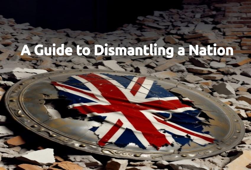 There are more measures for destroying a Nation such as controlling the media, open borders, multiculturalism, affiliation to empires like the EU etc., but the key measures are described above. Once the foundations are laid so that there is no vision of a united future it is easy to ladle on the extras. There will be little resistance.