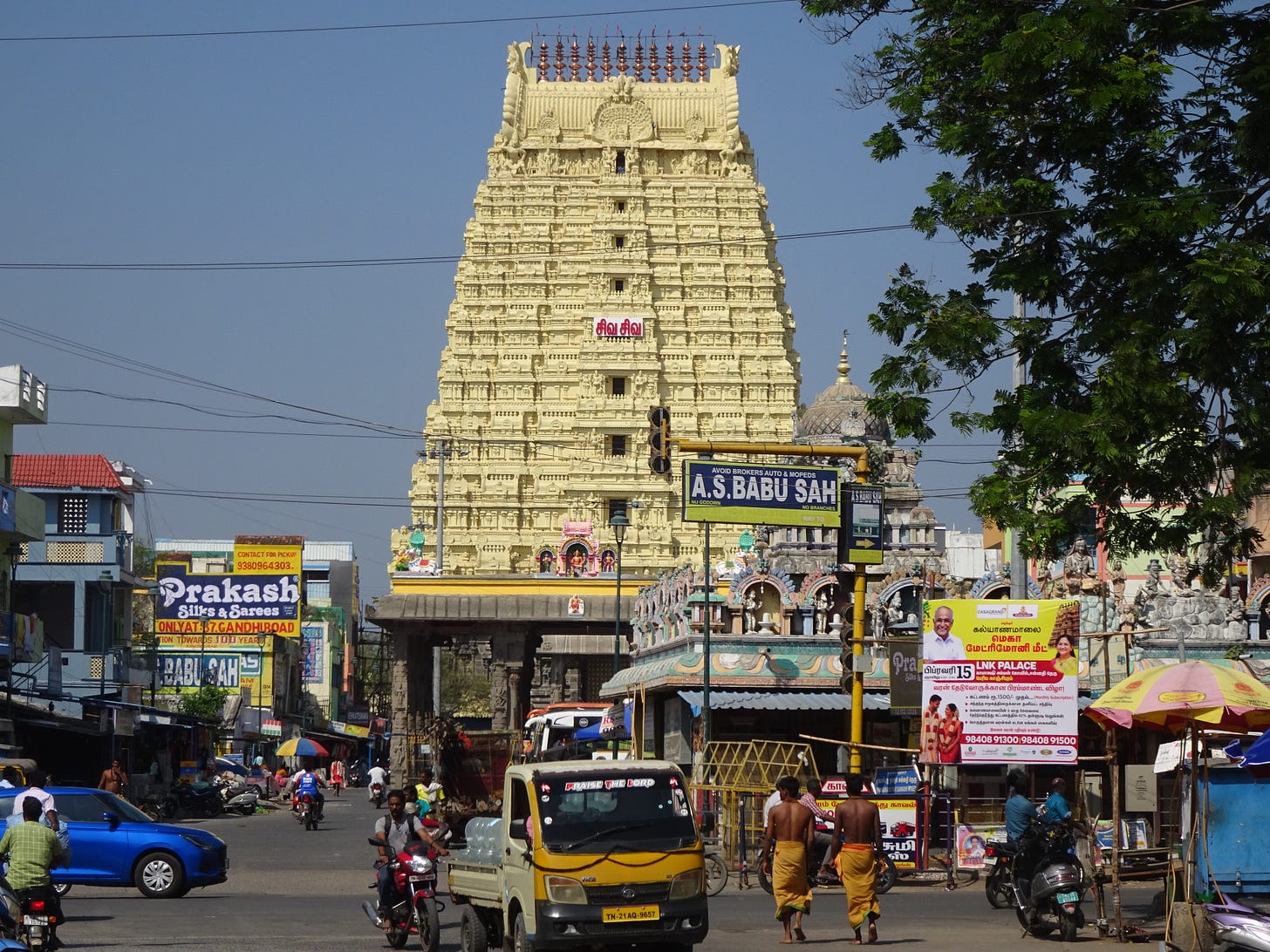 I am in Tamil Nadu at the moment. Rapid development has placed a layer of concrete infrastructure on the land. Fairly good intercity roads join large factories on top of the same old countryside and towns. The economic boom in Southern India is unlike that in China. The towns are not full of high rise building sites. There is a lot of suburban housing development. A few cities such as Hyderabad and Bengaluru have modernised areas but most are much the same. Agriculture in some areas, such as parts of the Deccan, has been taken over by corporate farming interests so that there are large fields farmed by machinery.