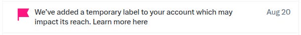 X has recently broken the mould by actually telling you that you have been Shadow Banned. Nowadays, if the AIs on X are sufficiently triggered they send you a ‘flag’ to tell you what has happened. Here is my latest example from a tweet I made about the political views of migrants: